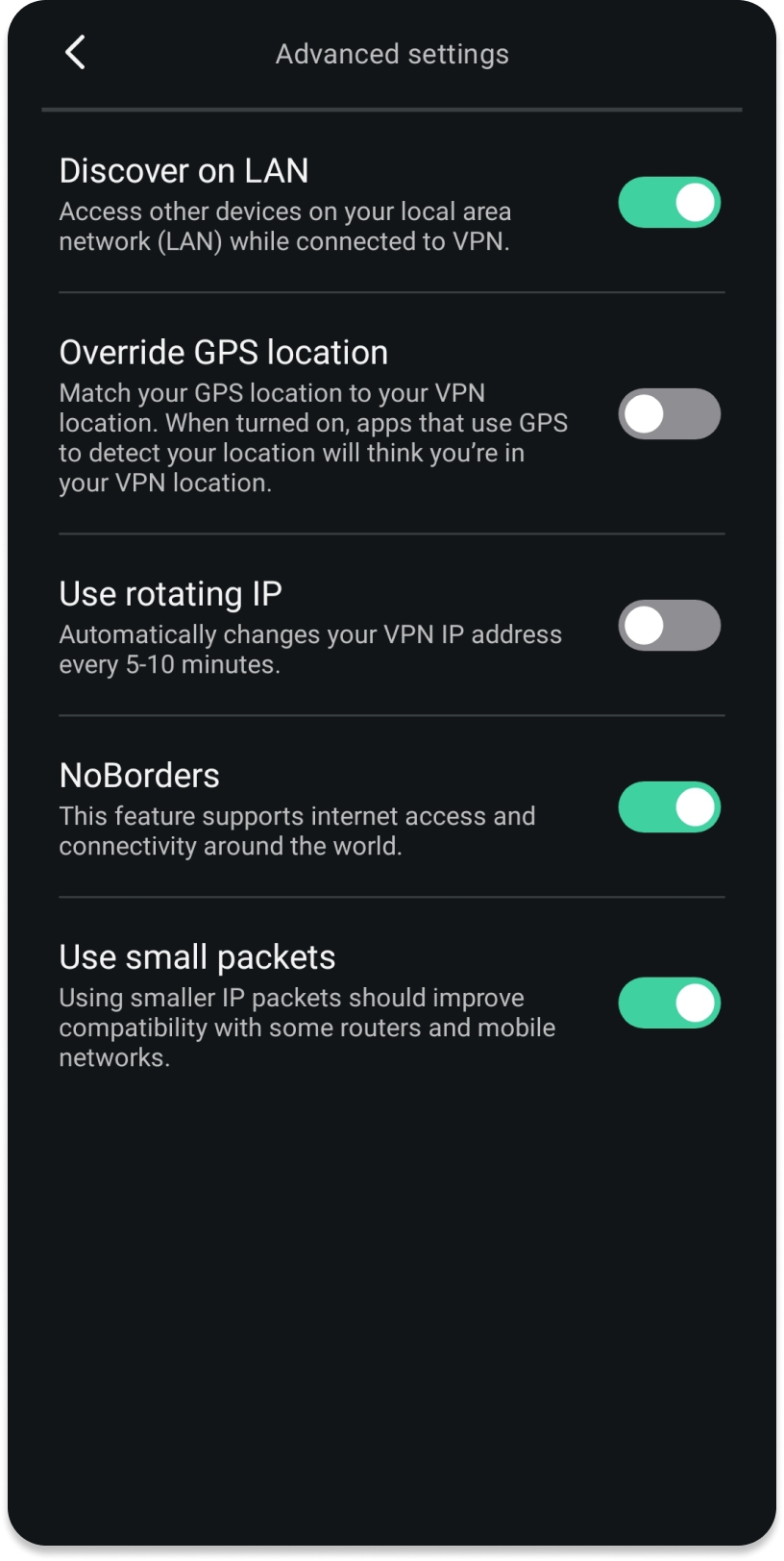 - Enable Override GPS location. This feature will match your GPS location with your chosen server's location.